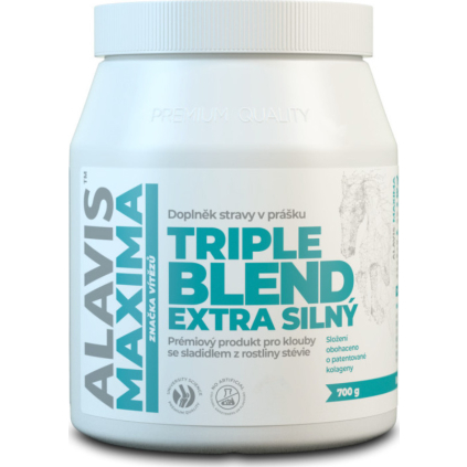 ALAVIS™ Triple Blend Extra Silný obsahuje kombinaci chondroprotektivních látek (glukosamin sulfátu a chondroitin sulfátu), látky MSM a značkových kolagenů Collyss a Cartidyss.