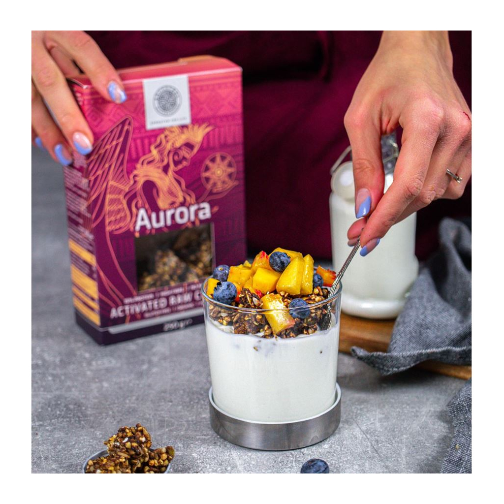 Renesance ve stravě! Aurora představuje nový začátek pro vaše tělo. Speciálně vyvinutá holistická formule 7 přírodních ingrediencí pro dodání energie, síly a vitality, pro podporu trávení, peristaltiky a mikrobiomu. Aurora je určená pro snídani nebo svačinu, hodí se pro ženy, muže i malé děti. Ocení ji sportovci i těhotné ženy. Stačí přidat jogurt, mléko nebo rostlinnou alternativu mléka, ideální je i do smoothies.
