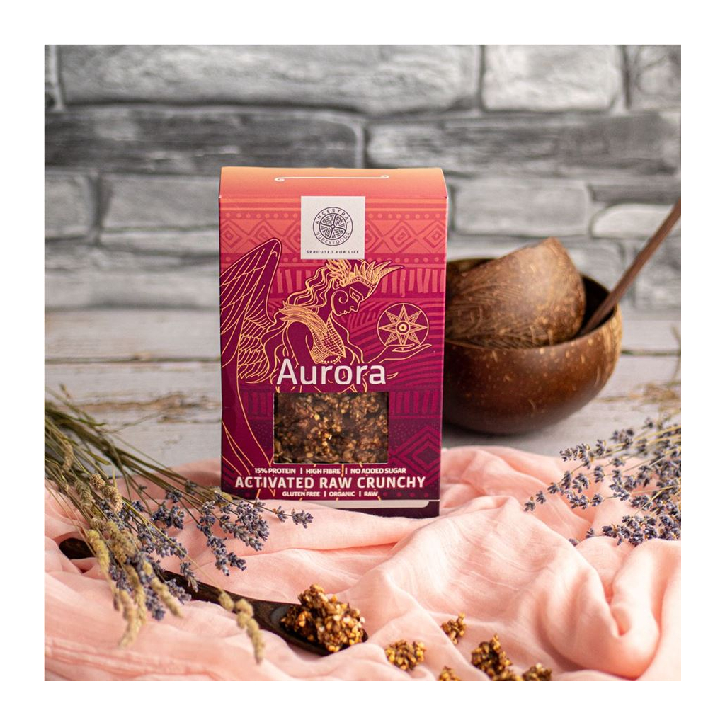 Aurora je vícesložková funkční potravina pro posílení vitality, trávení, energetického metabolismu a celkové harmonie. Hodí se pro muže i ženy, pro dospělé i děti. Je perfektním řešením pro sportovce, všechny s aktivním životním stylem a lidi vystavené vysoké míře stresu v každodenním životě. Obsahuje vitamíny a minerály v přírodních formách, které jsou velmi dobře využitelné pro tělo + posílené naklíčením = pohanka a slunečnicová semínka jsou naklíčené, tzn. aktivované, je zvýšen jejich bioaktivní potenciál. Jedna porce snídaňových cereálií vám dodá sílu ukázat to nejlepší, co umíte. Žádné umělé přísady a žádná izolovaná potravinářská aditiva – pouze 100% přírodní působení za pomoci superpotravin našich předků!
