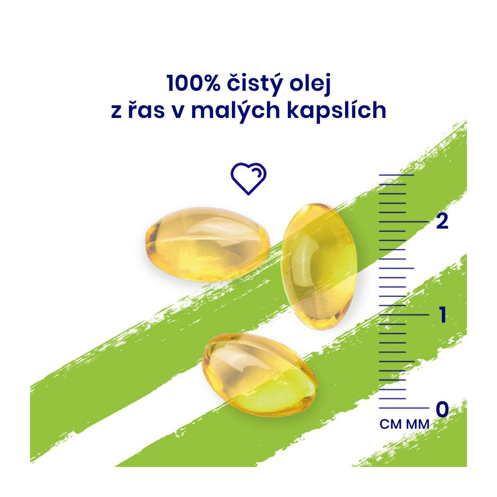 - Totožné omega-3 jako v rybím oleji (řasy jsou zdrojem omega-3 pro ryby)