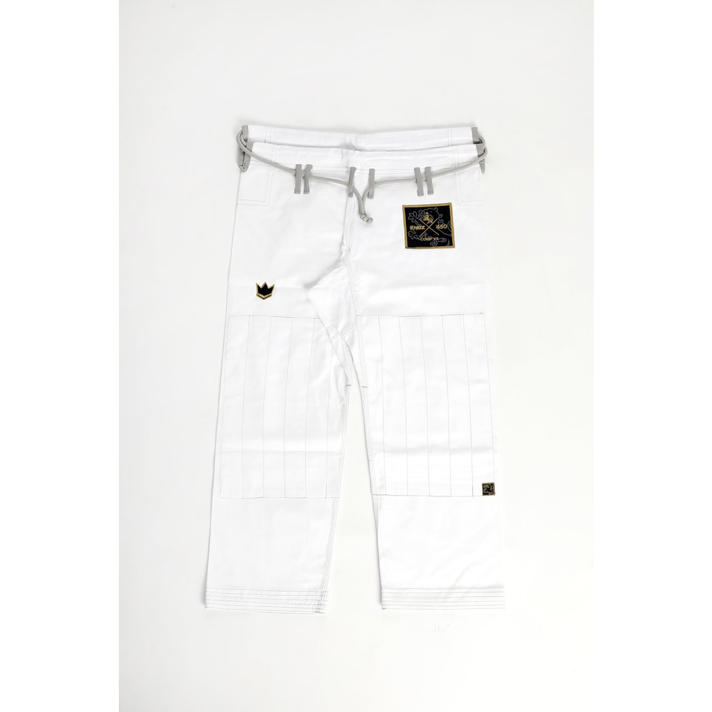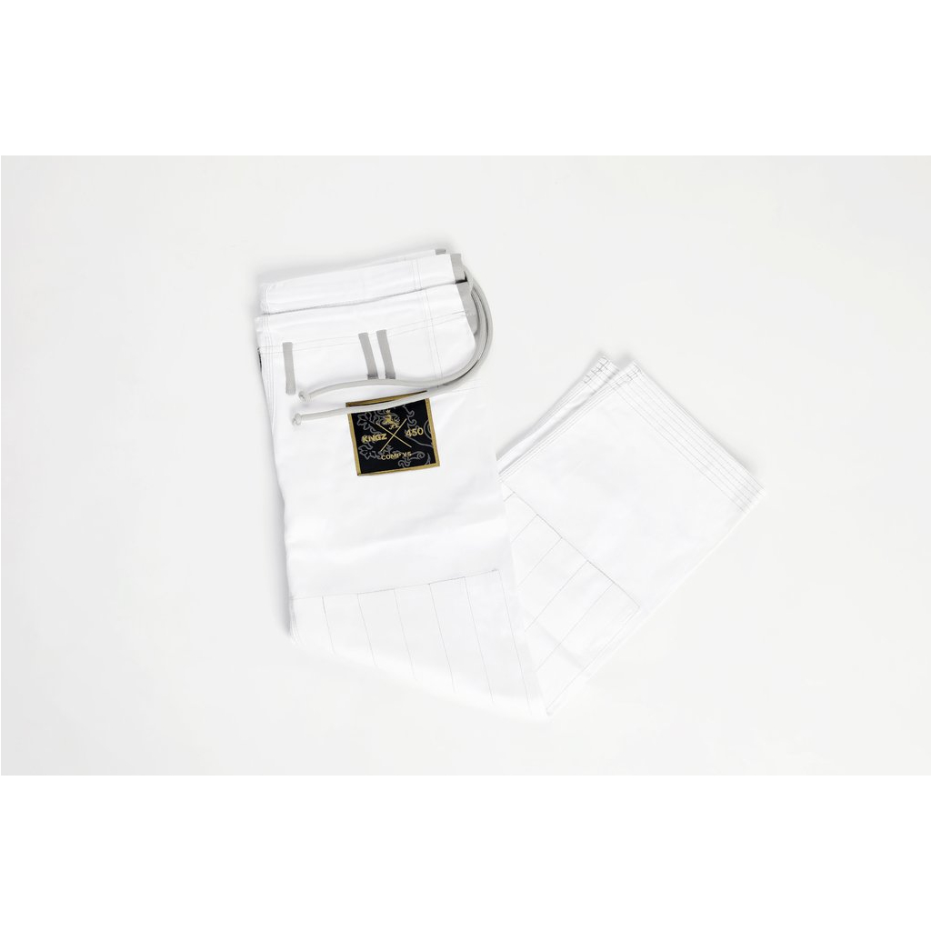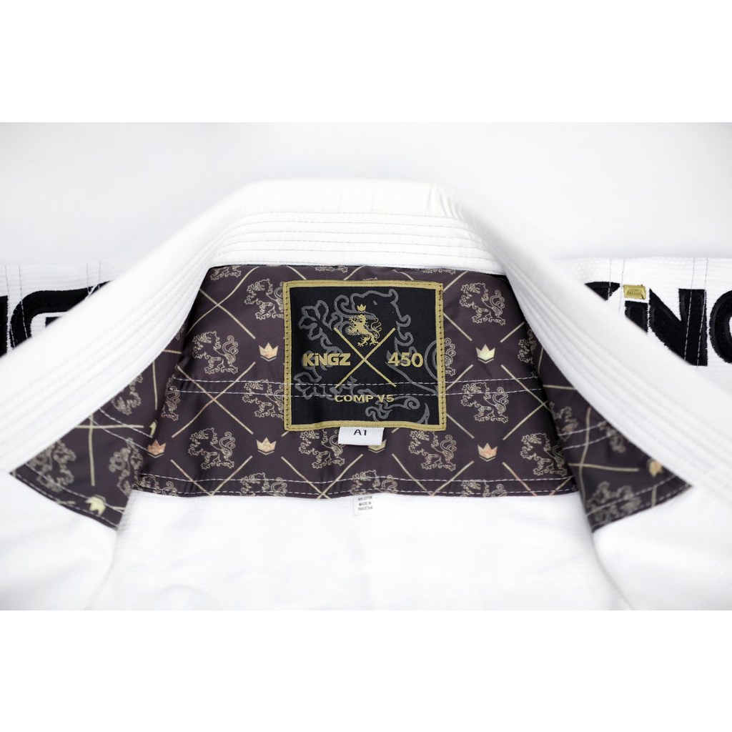 Kingz Comp 450 V5 má prvotřídní kvalitu a mimořádnou odolnost. Kimono je vyrobeno z jediného kusu tkaniny, má dostatečné vyztužení ve všech hlavních stresových bodech. Zároveň je u kimona zajištěno rychlejší vysychání než u běžných kimon, což vás uchrání od šíření bakterií. Kalhoty jsou vyrobeny ze 100% bavlněné tkaniny o průměru 10 oz, ideální jak pro každodenní drilly, tak pro nejdrsnější turnaje.