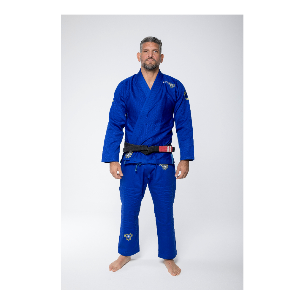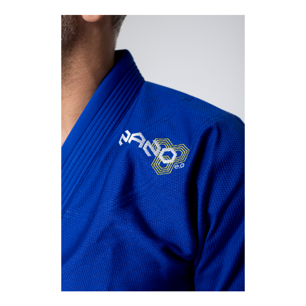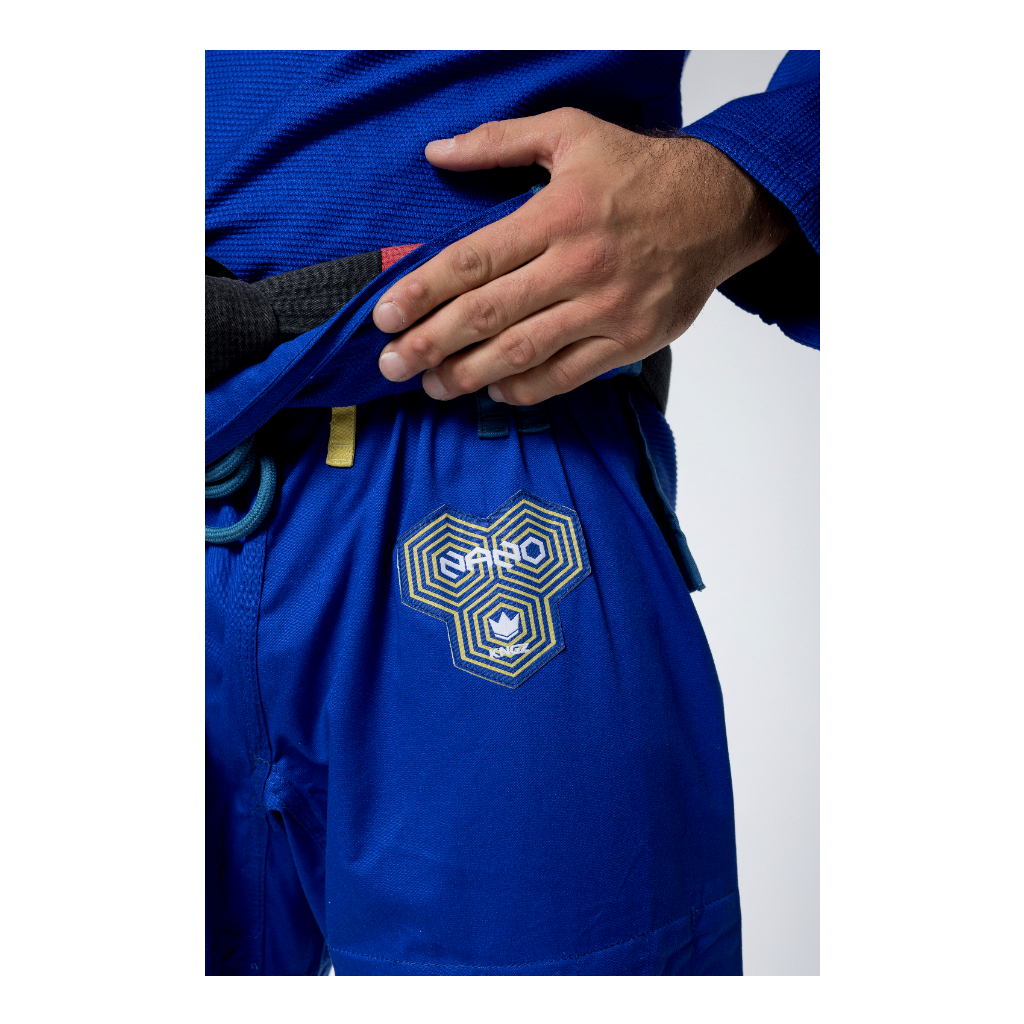 Modré Kingz Nanō kimono nabízí bundu z 400 Pearl Weave bavlny, vyrobenou z jediného kusu látky, se syntetickým, teple odolným vulkanizovaným gumovým límcem a kalhoty, které jsou vyrobeny z pohodlného bavlněného materiálu o síle 8 oz (ne ripstop, jako většina ultra-lehkých kimon) s dvojitým zpevněným polstrováním na kolenou.
