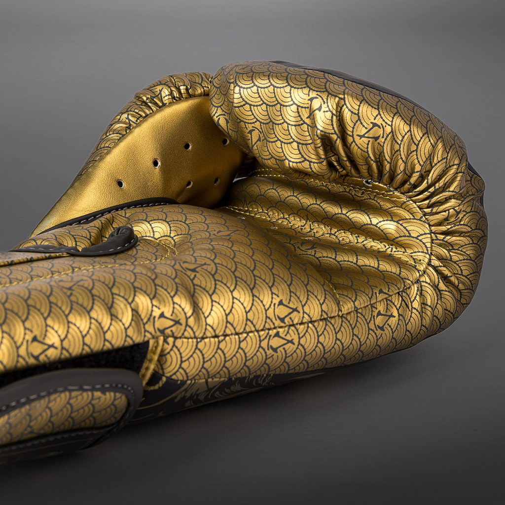 Opulentní černá a zlatá grafika dodává jedinečný vzhled, který inspiruje smrtícího válečníka v každém z nás. Vhodné pro box, kickbox a Muay Thai při pravidelném používání (3–4krát týdně).
