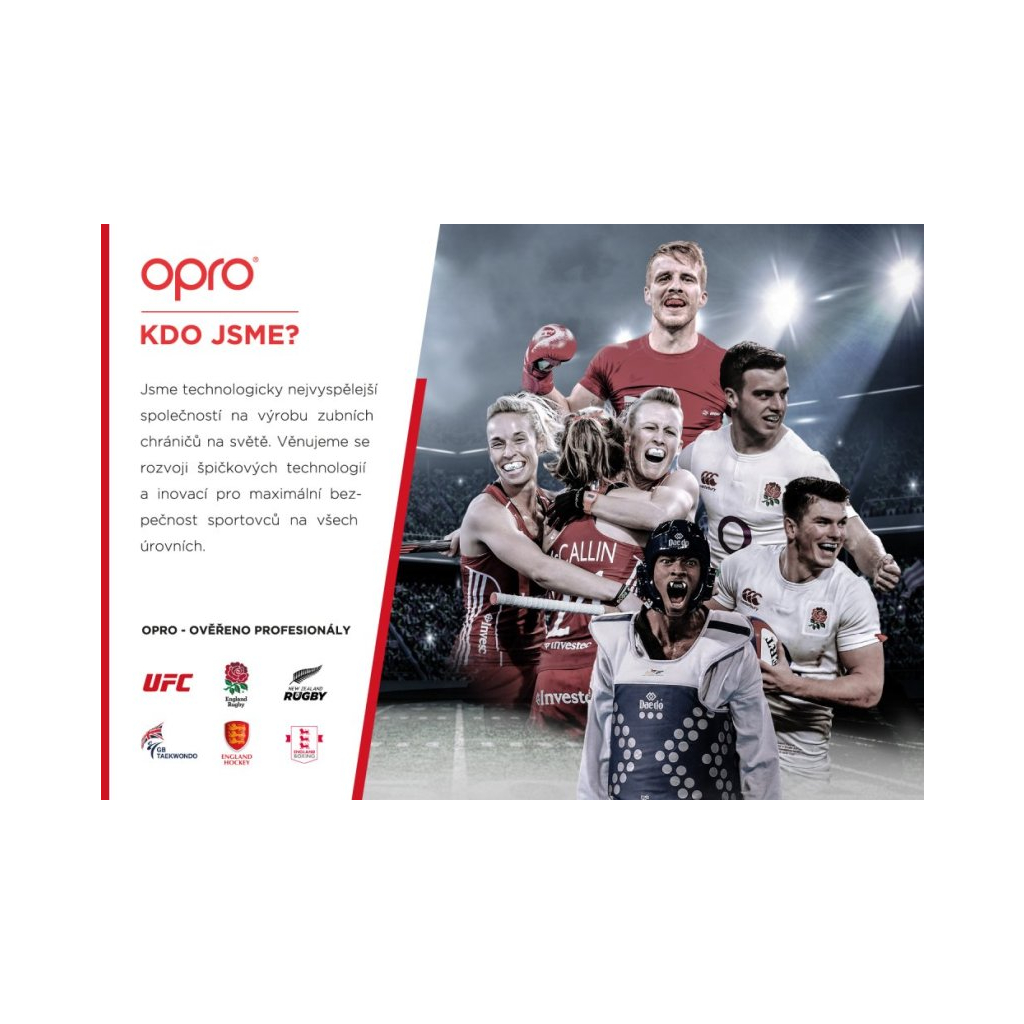 OPRO - je technicky nejvyspělejší společností na výrobu zubních chráničů na světě a je hlavním průkopníkem ve vývoji v oblasti ústní ochrany. Z moderního výrobního závodu ve Velké Británii, se značka věnuje rozvoji špičkových technologií, inovací a bezpečnosti pro sportovce na všech úrovních. Množství profesionálních světových sportovců, kteří nosí chrániče OPRO, ukazuje jak je podpora a inspirace na dlouhé cestě ke sportovnímu úspěchu rozhodující.