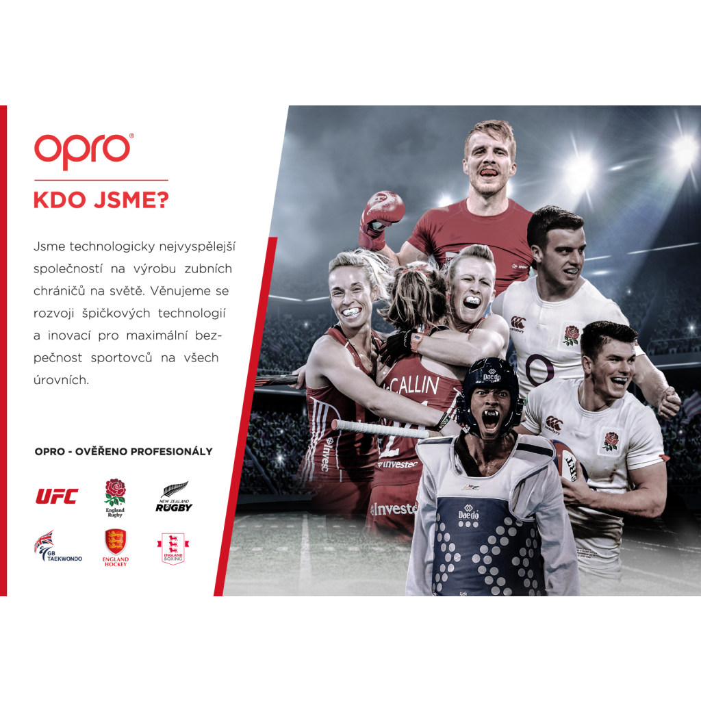 OPRO - je technicky nejvyspělejší společností na výrobu zubních chráničů na světě a je hlavním průkopníkem ve vývoji v oblasti ústní ochrany. Z moderního výrobního závodu ve Velké Británii se značka věnuje rozvoji špičkových technologií, inovací a bezpečnosti pro sportovce na všech úrovních. Množství profesionálních světových sportovců, kteří nosí chrániče OPRO ukazuje, jak je podpora a inspirace na dlouhé cestě ke sportovnímu úspěchu rozhodující.