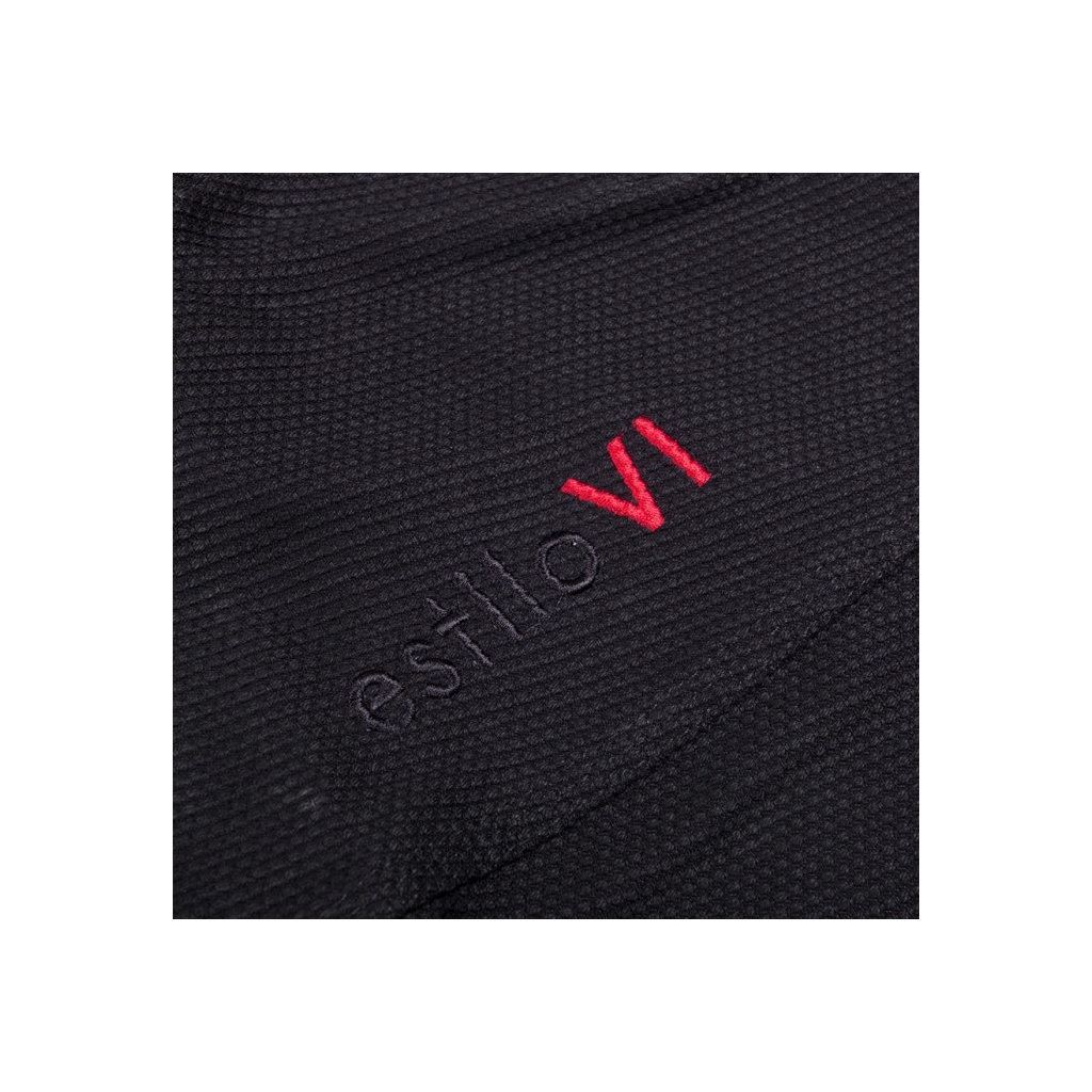 Vysoce kvalitní výšivky zdobí ramena gi a kalhoty. Estilo 6.0 také obsahuje některé jemně umístěné oblasti detailů, které nebyly dříve vidět na předchozích generacích Estilo. Kabátek gi Estila VI taktéž disponuje jedinečným odvětrávacím "rozparkem" ve tvaru Y, který navíc pomáhá zajistit lepší obepnutí kimonem. Jednou z mnoha užitečných vychytávek je šňůrka v kalhotech, která je částečně pružná, takže zajištění kalhot v pase je maximálně možné při maximálním pohodlí.