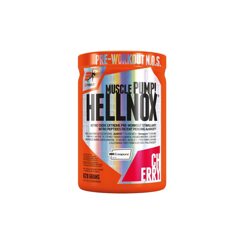 Absolutní novinka od Extrifitu je opravdu průlomová. Něco tak komplexního a strašlivě silného jste ještě neviděli. V produktu Hellnox je vše, co musí mít sval pro svůj rychlý růst. A vše ve volných formách, a dokonce ve formě nitropeptidů - tzn. těch nejmenších částeček, které bleskově frčí živit sval. Žádné trávení, nic. Hned do svalu.