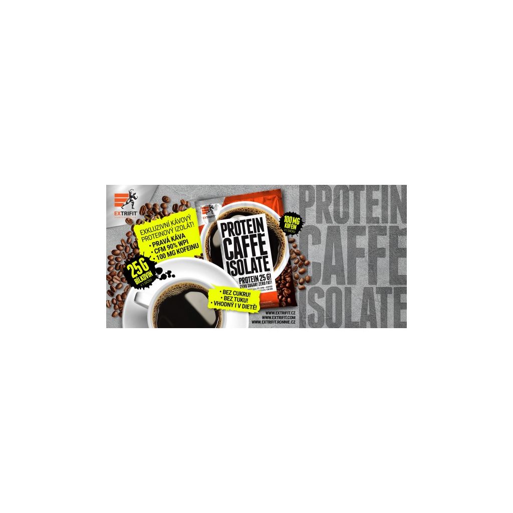 Výtečnou kávu máme rádi všichni. A my sportovci milujeme také proteiny. V situacích, kdy jste v přísné dietě, nemáte na výběr mnoho potravin, ani nápojů, na kterých byste si mohli pochutnat. V drsných týdnech před soutěží, kdy se trápíte nezáživnou dietou, obvykle vypijete i několik káviček denně. Extrifit pro Vás připravil kombinaci lahodné pravé kávy s nejkvalitnějším 90% syrovátkovým izolátem CFM s obsahem 5452 mg BCAA!