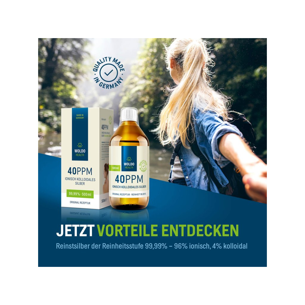 Woldohealth koloidní stříbro o čistotě 99,9 % je vysoce koncentrovaný přírodní kosmetický produkt, který napomáhá ke zmírnění projevů akné, zklidňuje podrážděnou pokožku a regeneruje pleť. Díky svým antibakteriálním vlastnostem snižuje pocení a tvorbu plísní.