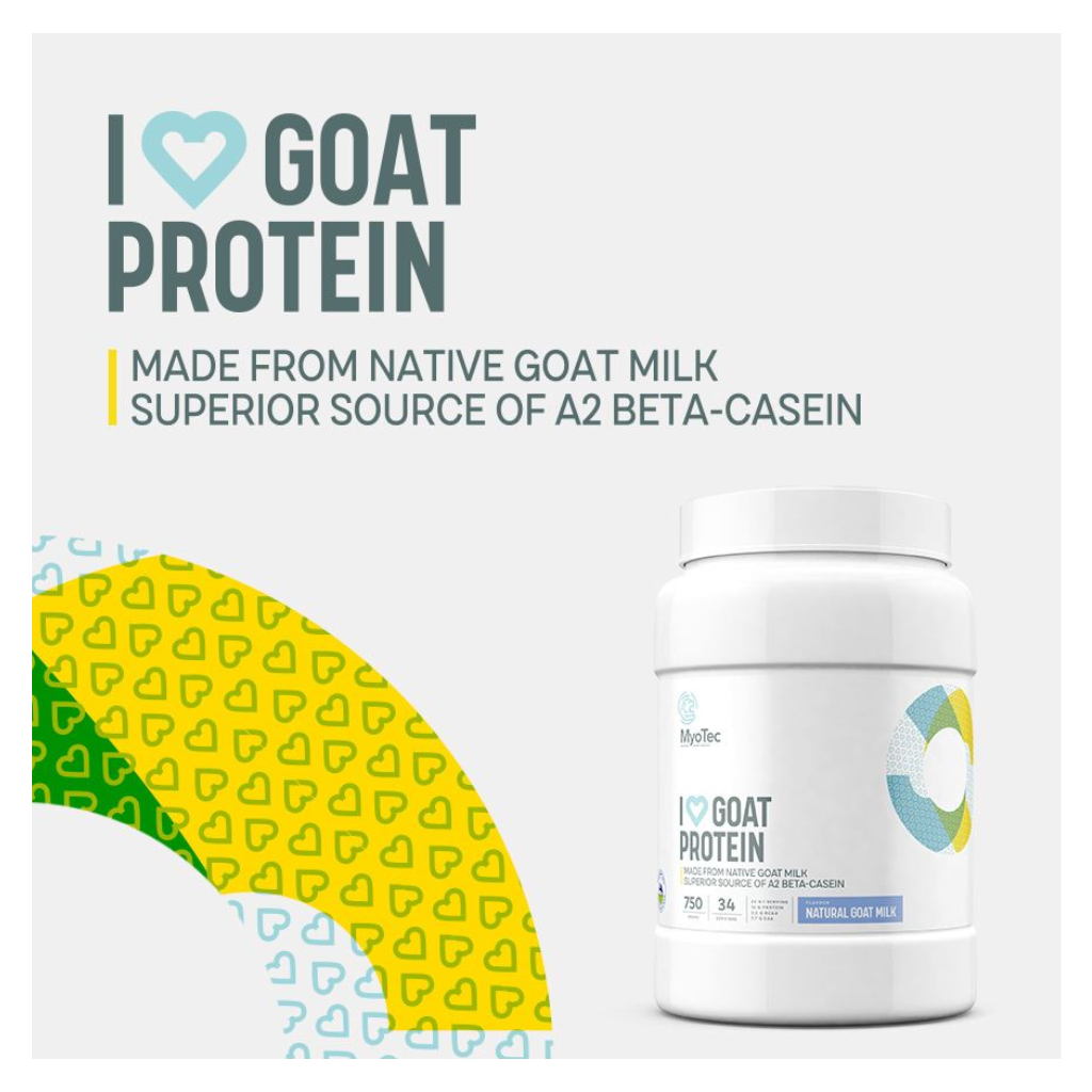 I Love Goat Protein představuje další milník značky MyoTec v cestě za co nejpokročilejšími a nejčistšími doplňky stravy. Proteiny pocházející z klasického A1 mléka (od plemen jako je Holštýnský nebo Fríský skot) nebo syrovátky jsou pro velké množství lidí obtížně stravitelné. Mléko určitých druhů krav (například Guernsey nebo Jersey) a koz ale obsahuje více tzv. A2 kaseinu, který je podobnější kaseinu obsaženém v lidském mléce a proto jej náš zažívací trakt lépe snáší.