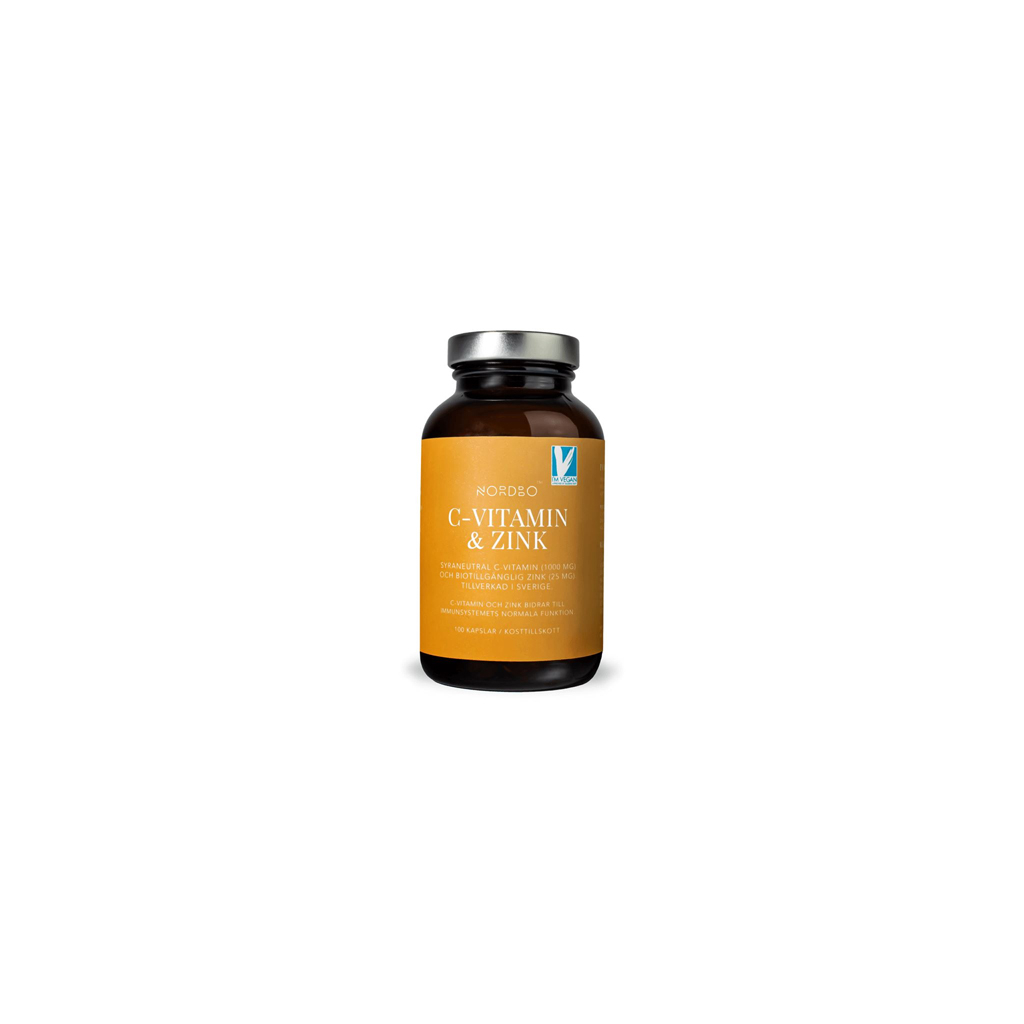 Nordbo Vitamin C & Zinc obsahuje dvě složky důležité pro efektivní obranný štít - vitamín C a zinek. Vitamín C je v doplňku obsažený ve velmi vysoké dávce - 1000 mg na 2 kapsle(= 1250 % RHP). Navíc je v kysele neutrální formě askorbátu vápenatého, je tedy šetrný k žaludku. Zatímco zinek je v chelátované formě pikolinátu zinečnatého, kdy je zinek vázaný s kyselinou pikolinovou (přirozený metabolit tryptofanu), a je tedy velmi dobře dostupný pro tělo.