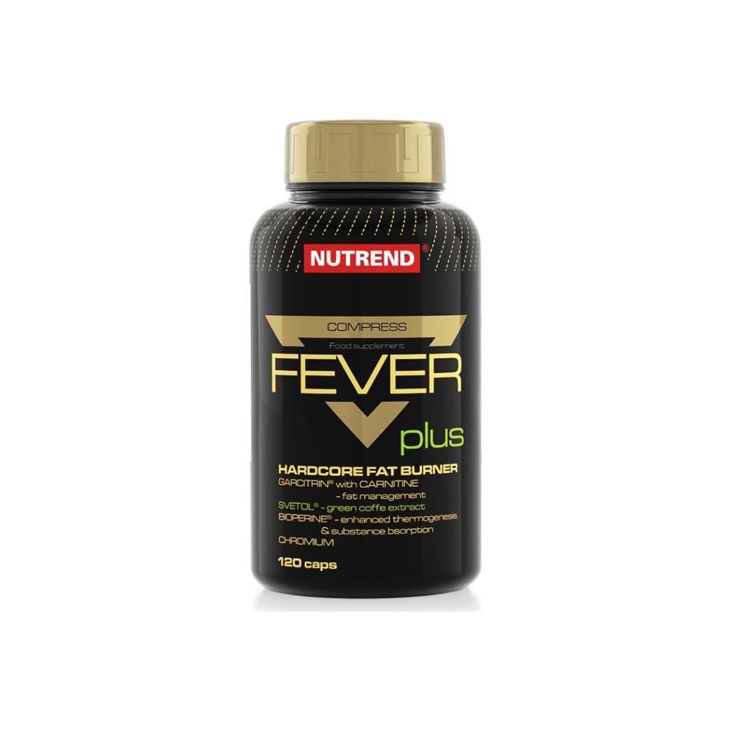 COMPRESS FEVER složení: extrakt Garcinia cambogia (50 % kyseliny hydroxycitronové, 5 % garcinolu) - Garcitrin®, želatinová tobolka (želatina, barvivo oxid titaničitý), extrakt ze zelené kávy (47 % kyseliny chlorogenové, 52 % polyfenolů) - Svetol®, extrakt z Guarany (10 % kofeinu, maltodextrin, barvivo karamel), L-karnitin tartrát, L-tyrosin, L-arginin, L-citrulin malát, extrakt Yerba mate (8 – 10 % kofeinu), extrakt Citrus aurantium (8 % synefrinu), extrakt Withania somnifera (3 % withanolidů), plnidlo stearan hořečnatý, extrakt ze zeleného čaje (50 % polyfenolů, 8 % kofeinu), protispékavá látka oxid křemičitý, extrakt Ginkgo biloba (24 % flavonů), extrakt z černého pepře (95 % piperinu) - Bioperine®, laktát chromu.