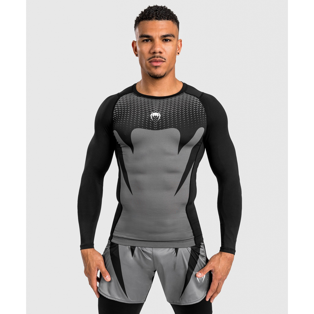 Pánské funkční tričko / rashguard Venum ATTACK - dlouhé rukávy - Black/Grey