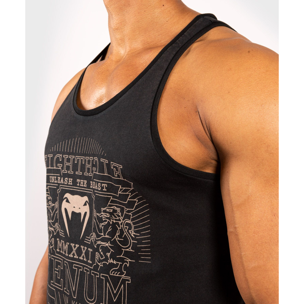 Tílko Venum LIONS21 je vypasované a mírně elastické. Vybledlý efekt stonewash bavlny v kombinaci s potiskem inspirovaným vojenskými motivy ze starověkého Říma mu dodává mimořádně originální retro a městský styl.