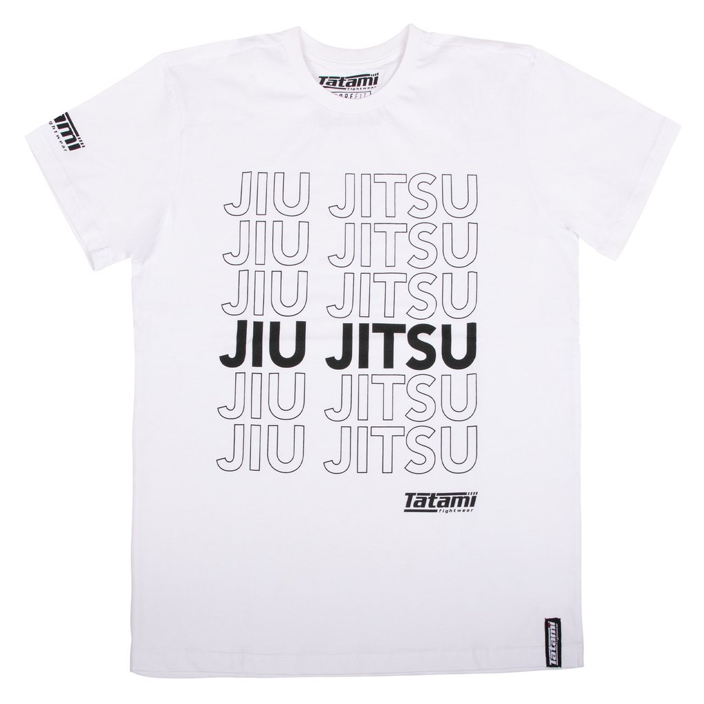 Tričko Repeat je k dispozici ve více barvách, na jeho přední straně je jednoduchý design s nápisy JIU JITSU, které doplňují loga Tatami na krku a rukávu.
