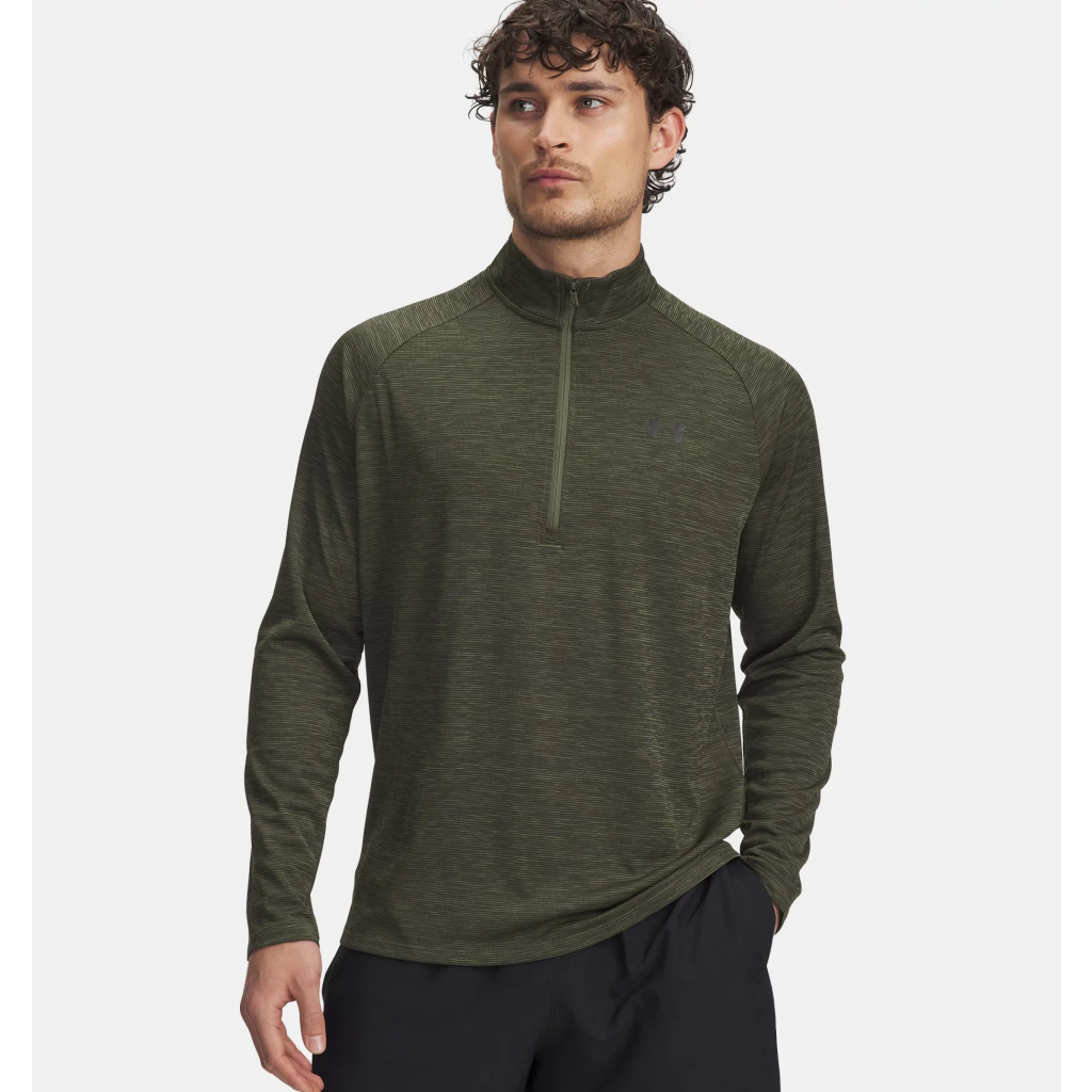 Pánské tričko Under Armour UA Tech Textured 1/2 Zip-GRN - zelené