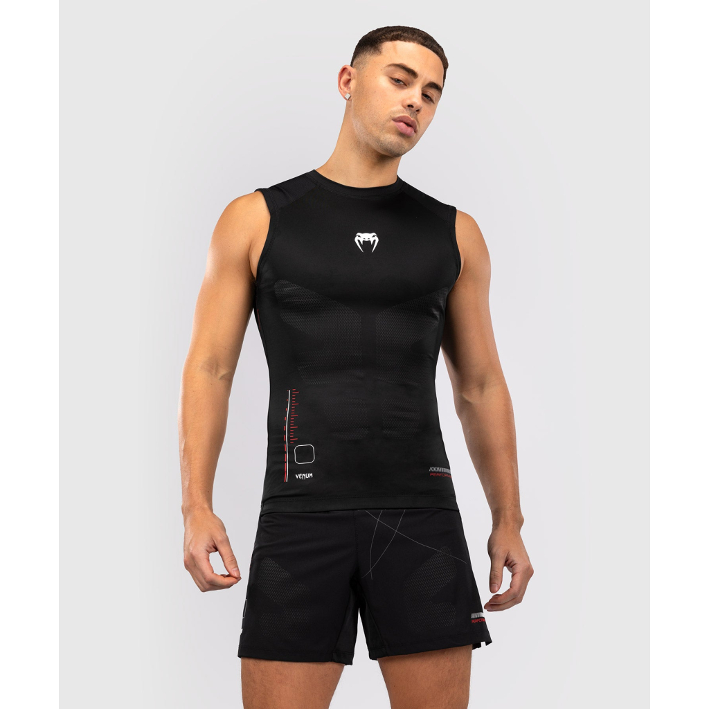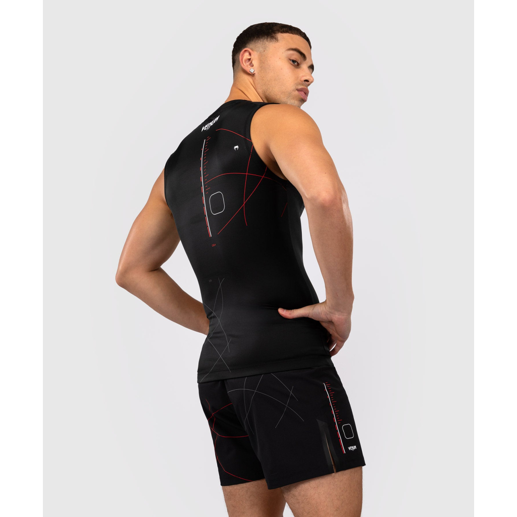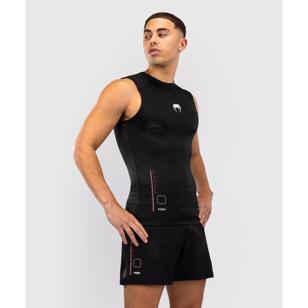Tílkový rashguard Venum Tactical XT Sleeveless Rashguard v černé/ohnivě červené barvě slouží jako druhá kůže a poskytuje ochranu před zraněním i volnost pohybu při no-gi jiu-jitsu a grapplingu. Kompresní technologie chrániče pomáhá také podpořit regeneraci svalů.
