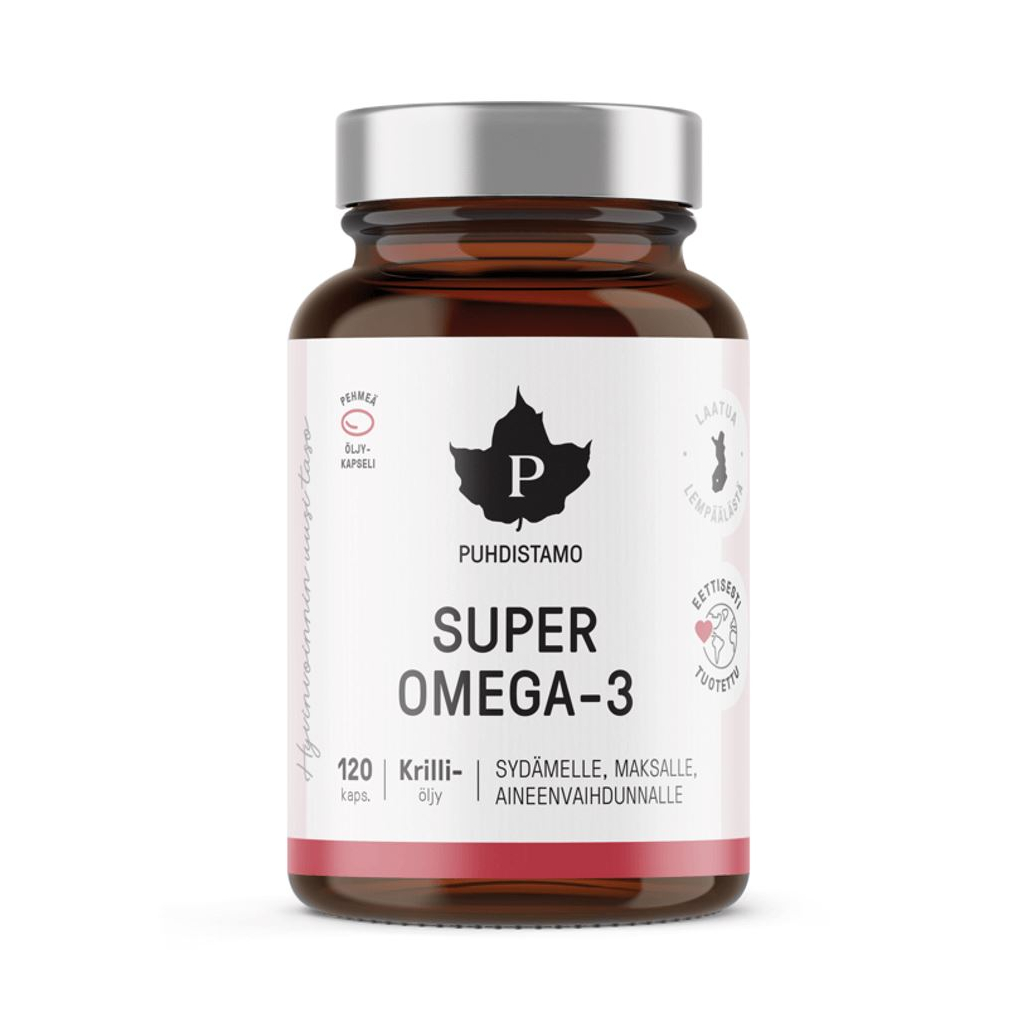 Omega-3 ze superčistého zdroje – krillu žijícího v oceánu kolem Antarktidy, kde je nejčistší mořská voda na světě. Omega-3 jsou získané metodou Ecoharvest, která minimalizuje nechtěný úlovek, kdy jsou uloveni i jiní mořští živočichové (tak je to běžné u rybolovu, který je nejběžnějším zdrojem produktů omega-3). Krill použitý pro výrobu Omega-3 Puhdistamo žije v mořích daleko od rafinérií a velkého lodního provozu, výsledný produkt si proto udržuje vysokou čistotu. Omega-3 jsou navíc v přírodní fosfolipidové formě, která je pro tělo přirozená a tedy i vysoce využitelná (lze srovnat s konzumací celých ryb).
