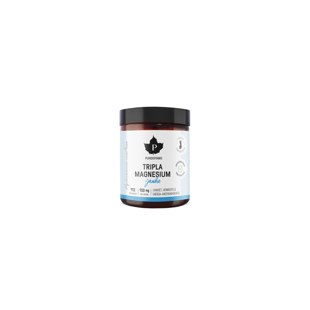 Tripple Magnesium obsahuje tři chelátově vázané formy hořčíku - malát hořečnatý, bisglycinát hořečnatý a taurát hořečnatý. Hořčík je v těchto formách vázaný s druhou látkou (kyselinou jablečnou, L-glycinem nebo L-taurinem stejným druhem vazby, která se přirozeně vyskytuje v přírodě = chelátová (organická vazba). Díky tomu je pro tělo velmi dobře využitelný, řádově o desítky procent více než u anorganických vazeb (oxidy,…).