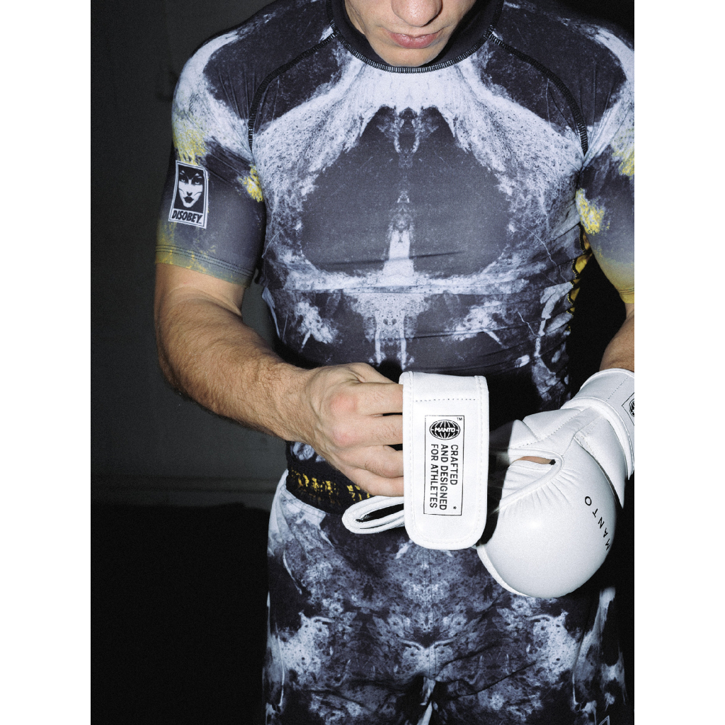 Poruš pravidla. Rashguard MANTO DISOBEY je víc než funkční výbava – je to postoj. Kompresní střih, odolný materiál a výrazná grafika ti dodají sebevědomí na tréninku i v zápase. Ideální pro BJJ, MMA, grappling nebo silový trénink.