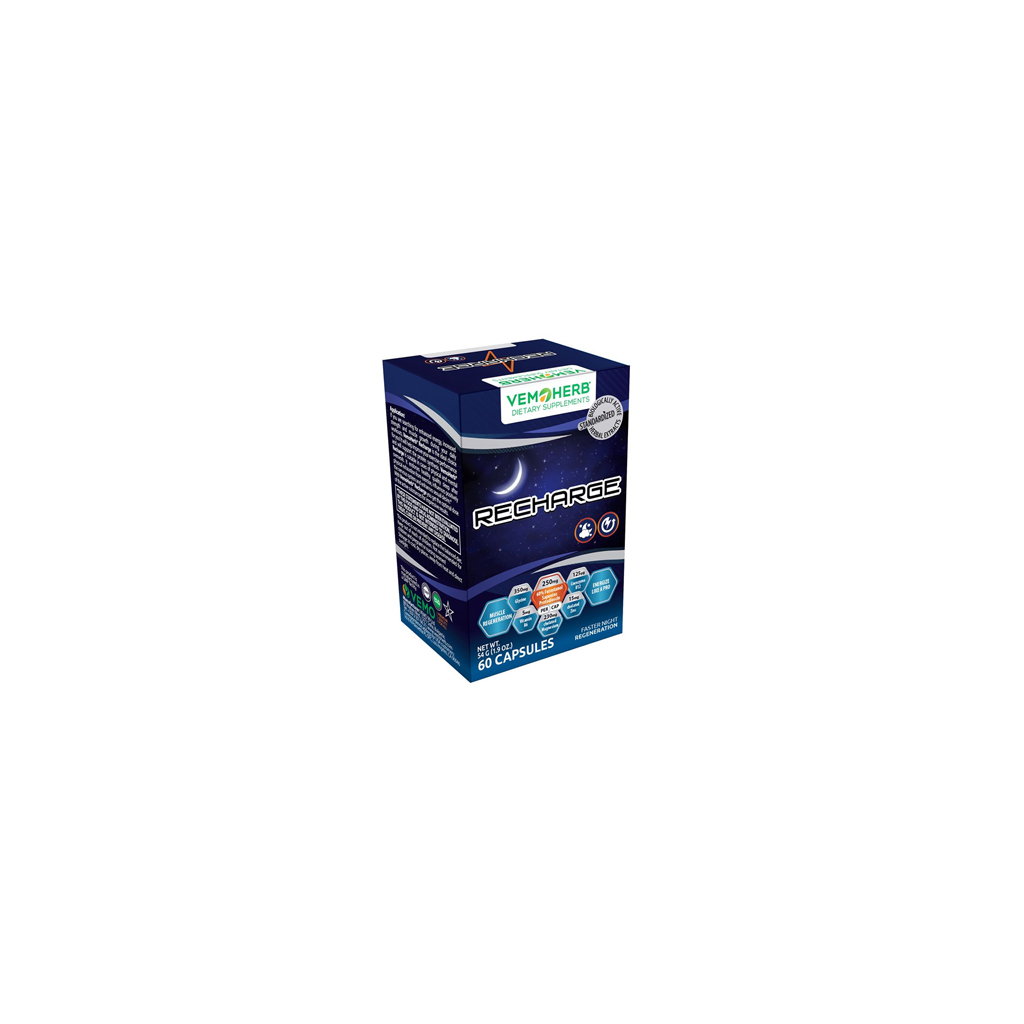 Recharge je komplex šesti účinných složek určených pro podporu kvalitního spánku a regenerace - při nadměrném fyzickém, sexuálním a psychickém zatížení. Pravidelná suplementace přináší pozitivní výsledky pro optimalizaci spánkového režimu, pro podporu proteosyntézy během spánku, pro harmonizaci nervového systému a pro navýšení tréninkových výsledků a výkonu. Při pravidelném tréninku, fyzické a psychické námaze, může docházet k problémům se spánkem, díky vybuzení organismu a následnému nadměrnému vyčerpání. Zhoršená kvalita spánku vede ke zhoršení kvality výkonu, a může vznikat začarovaný kruh, ze kterého je těžké vystoupit. Recharge představuje řešení v dlouhodobém horizontu - nabízí doslova restart spánkového režimu při dlouhodobé fyzické zátěži + posílení proteosyntézy a regenerace ve spánku.